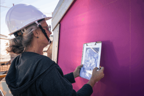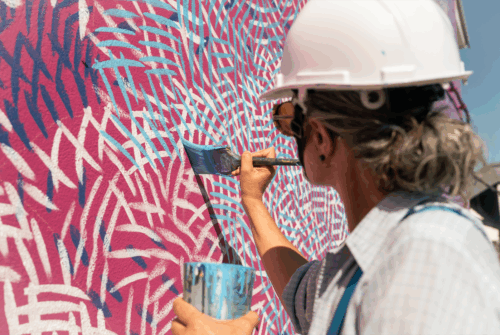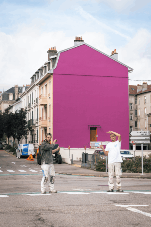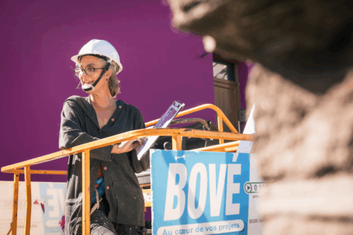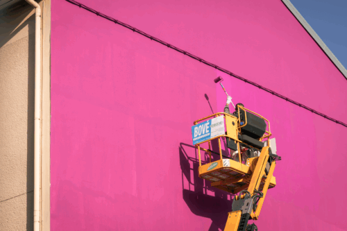Avant que la magie n’opère, il a fallu préparer l’écrin. Chez Bové, nous avons eu l’honneur d’intervenir en amont pour remettre en état le support et assurer à l’œuvre solidité et pérennité. Nettoyage de la façade, traitement des fissures, reprise du soubassement, application de peinture puis d’un vernis protecteur : chaque étape a contribué à donner à Nadège Dauvergne un mur prêt à accueillir son geste artistique.